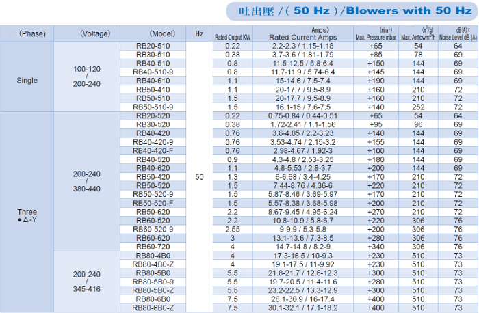 Casing(except RB80)and impellers are made of aluminum alloy and have excellent features on mechanic strength、 durability、light weight and smooth exterior.