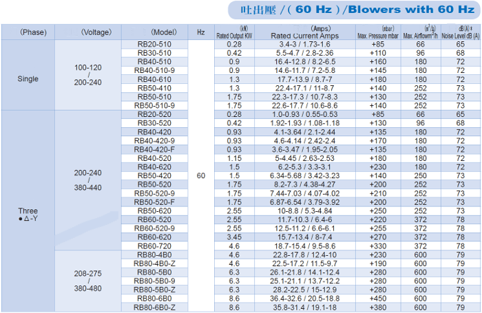 Casing(except RB80)and impellers are made of aluminum alloy and have excellent features on mechanic strength、 durability、light weight and smooth exterior.